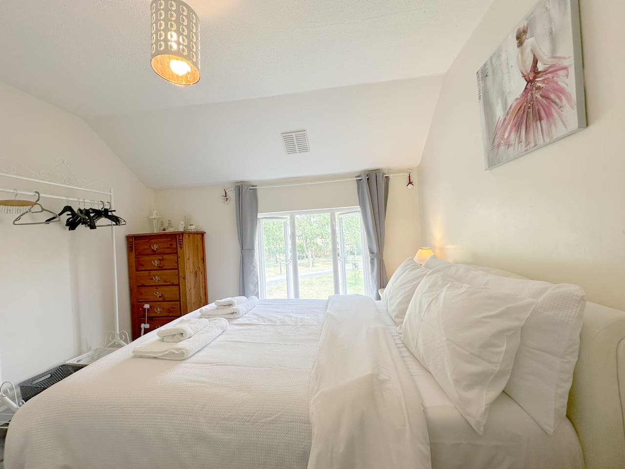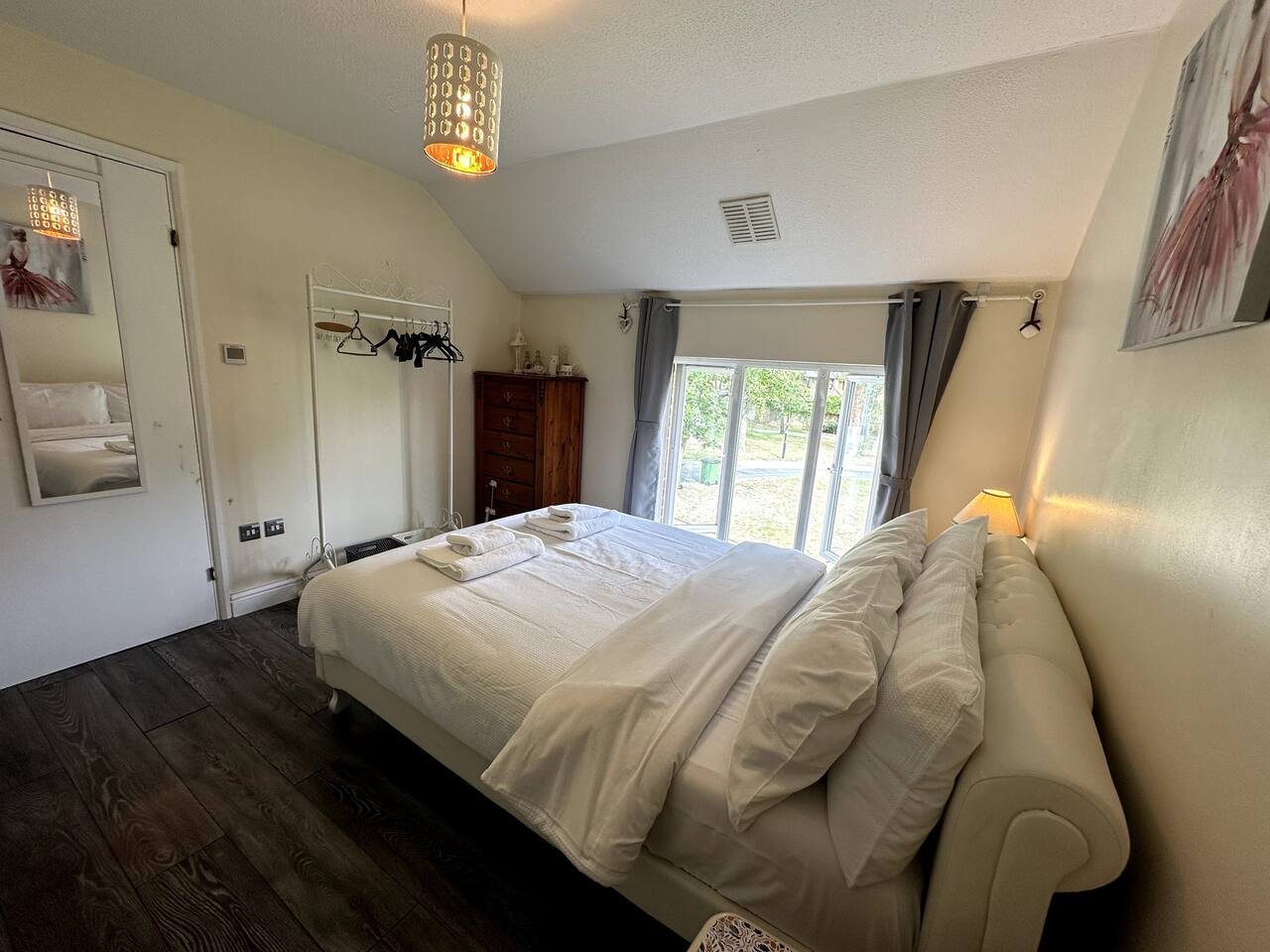 Please note that the wardrobe in the master bedroom is locked as we keep some personal belongings there. However, there is a clothes rack provided and drawers for your needs. After taking a shower, please remember to open the window for additional ventilation to avoid condensation on the ceiling.