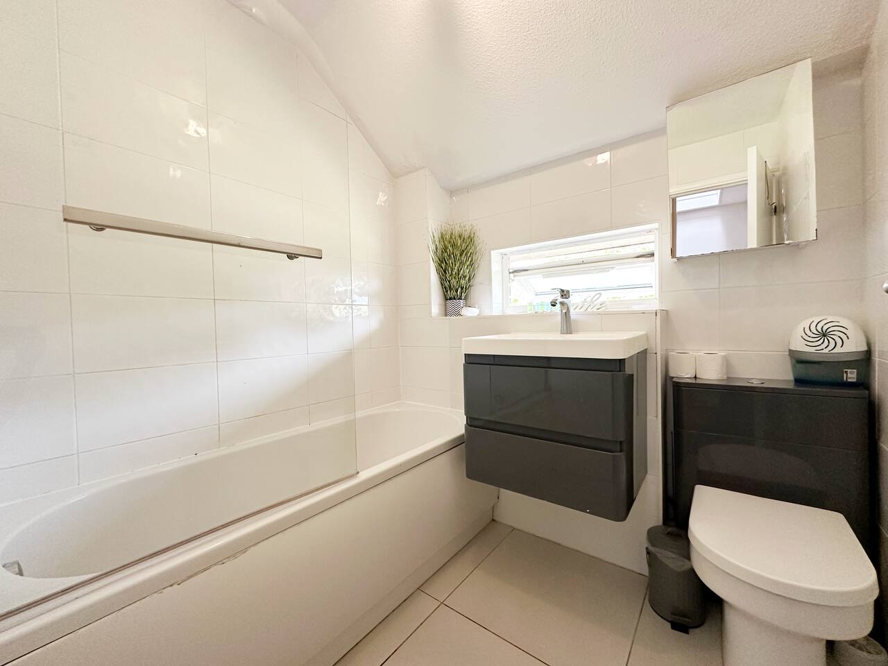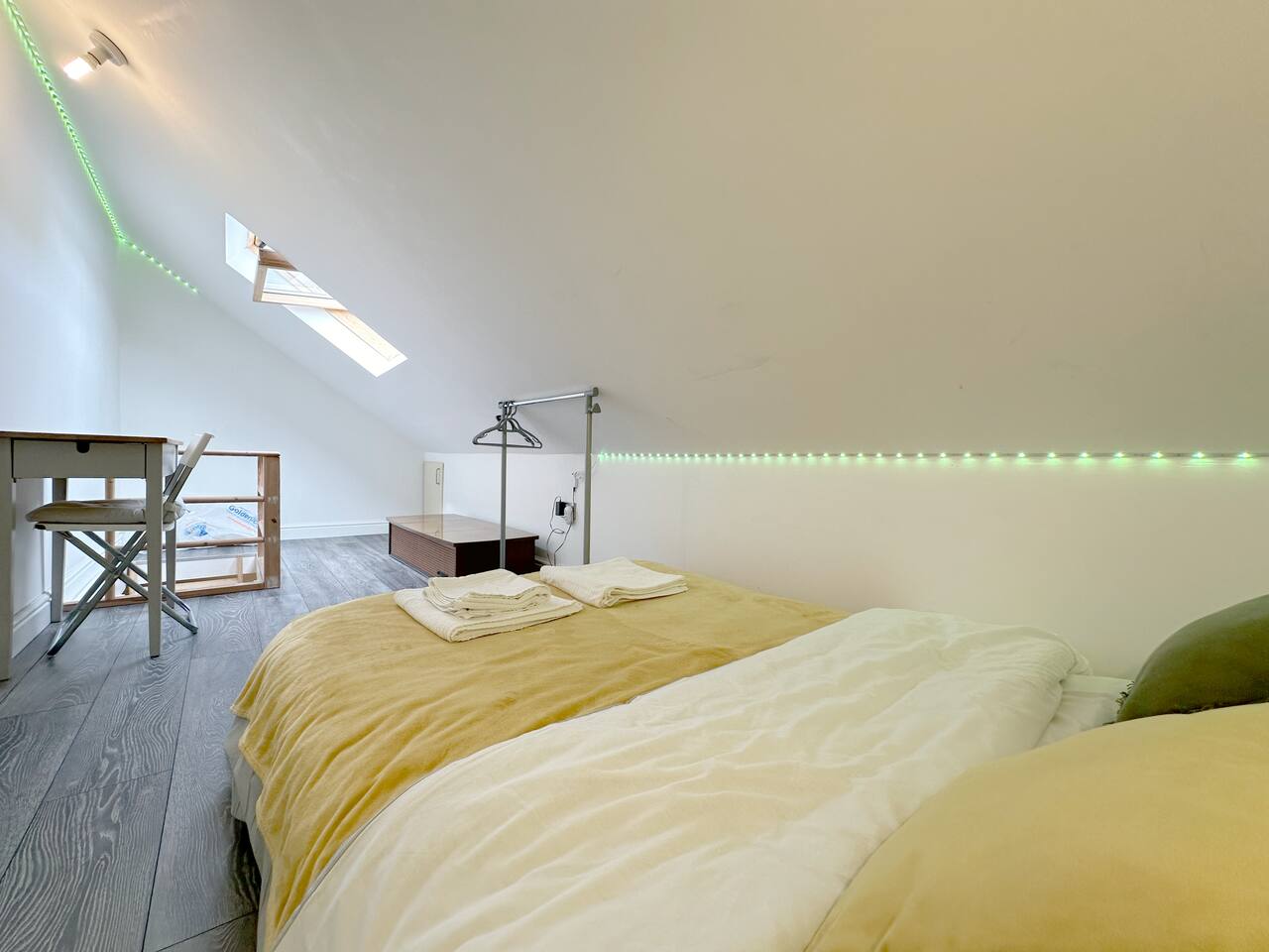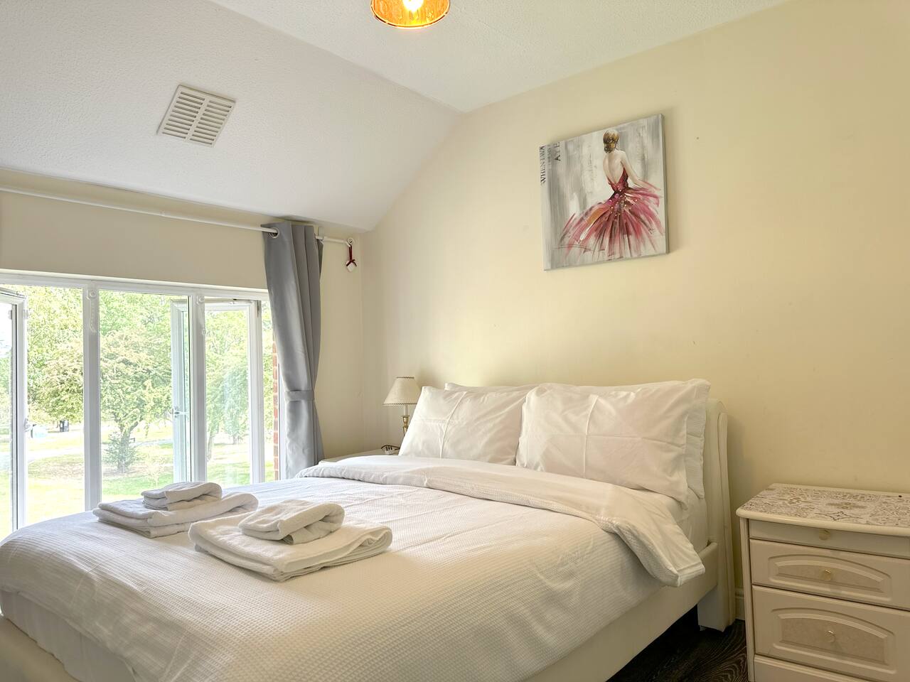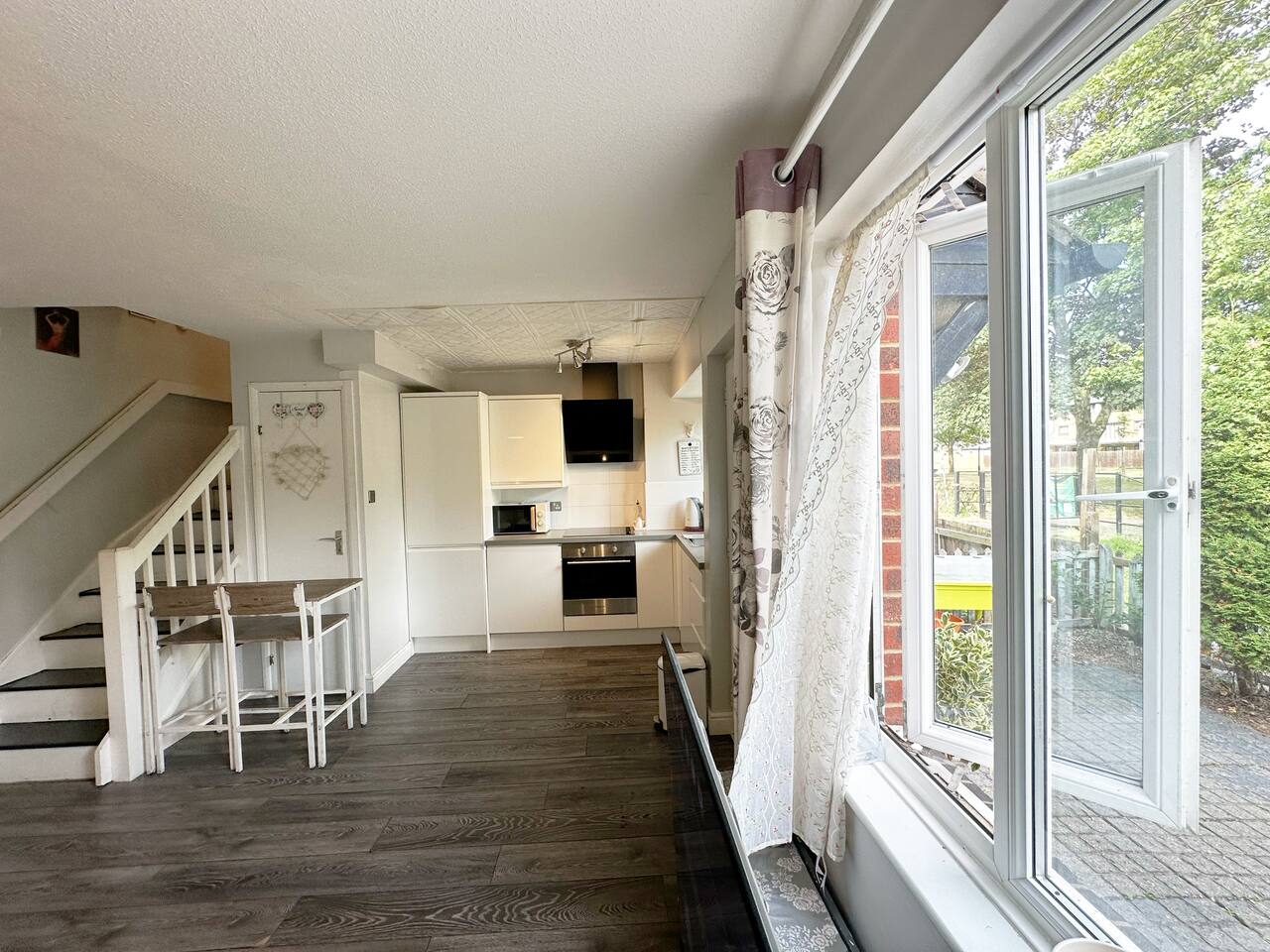 Discover the charm and convenience of London from this inviting 2-bedroom residence, your quintessential home away from home. The ground floor is designed with an open-plan kitchen, living, and dining area, creating an ideal space for both relaxation and social interaction. This fluid layout encourages a seamless living experience. Ascending to the upper floor, you will encounter two tranquil double bedrooms. It is important to note that the second bedroom is a loft conversion accessible via steep stairs, which may pose a challenge for some guests. One of the standout features of this property is the front garden, which offers a serene view of a lush green park. This area serves as an idyllic setting for enjoying your morning coffee or indulging in a good book during the afternoon. However, do be aware that the vibrant neighborhood and the adjacent park might attract local youngsters, resulting in occasional noise. Situated in South East London, the house is conveniently located just a 10-minute bus ride from Abbey Wood station. From there, you can effortlessly access the Elizabeth Line and other train services, facilitating swift travel to central London in a mere 15 minutes. Additionally, there is a dedicated parking for our guests for 1 car and also free on street parking. To ensure a comfortable stay, we provide all essential amenities, including linen, towels, and toiletries. The living area is furnished with a cozy 3-seater leather sofa, a dining table, and a Smart TV. The kitchen is fully equipped with modern appliances, such as an oven, hob, fridge, freezer, and all necessary cooking utensils to prepare your meals. The master bedroom boasts a double bed, a clothes rack with hangers, towels, and fresh linen. This room is further enhanced by underfloor heating, providing warmth during colder months. The loft bedroom is equipped with a futon double bed, a clothes rack with hangers, an LED light strip above the bed, towels, and fresh linen. An electric heater fan is available in this room to ensure a comfortable temperature. Please be mindful that the loft bedroom may not be suitable for individuals of taller stature. The bathroom includes a bathtub, toilet, and a selection of toiletries, such as travel-size shower gel, soap, and shampoo. Should you require additional toiletries during your stay, they can be conveniently purchased at the nearby Thamesmead Shopping Centre or near Abbey Wood station. Parking is straightforward, with a designated spot available for one vehicle, and additional free public parking on the street.