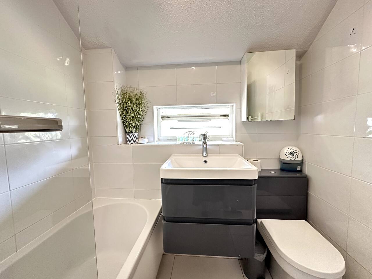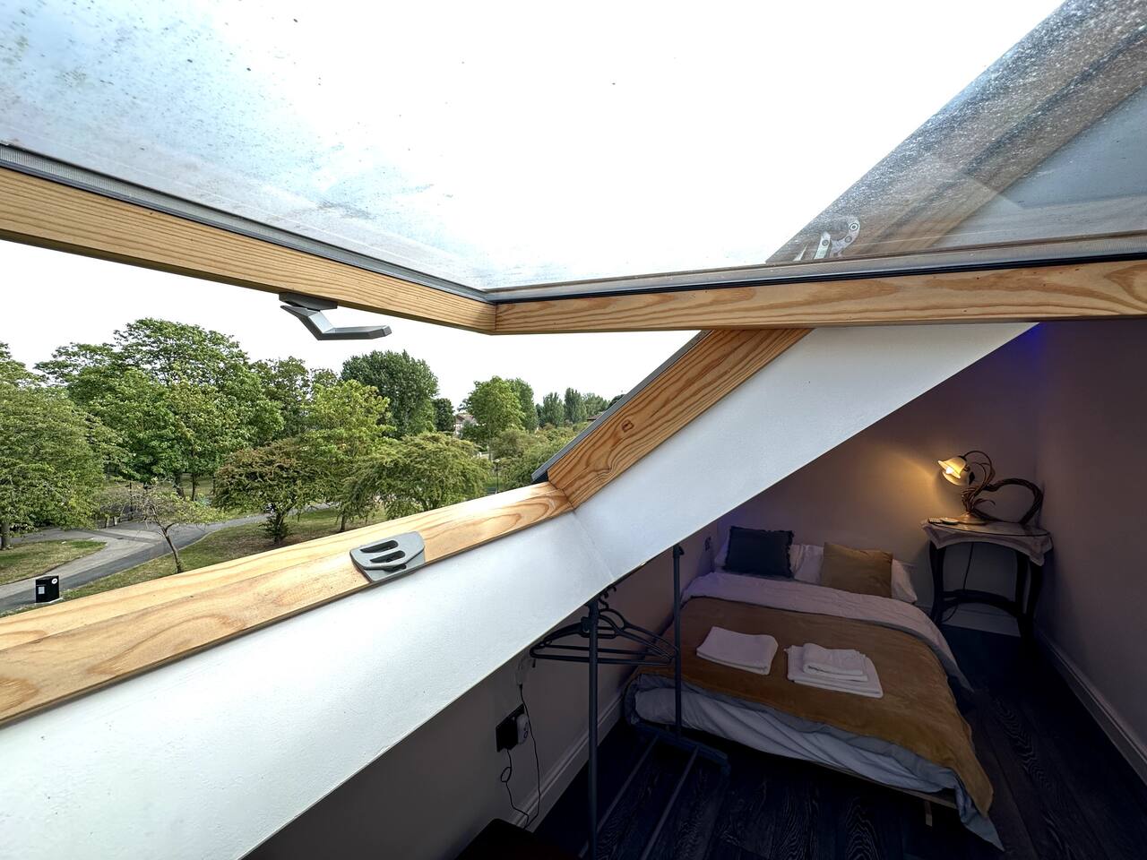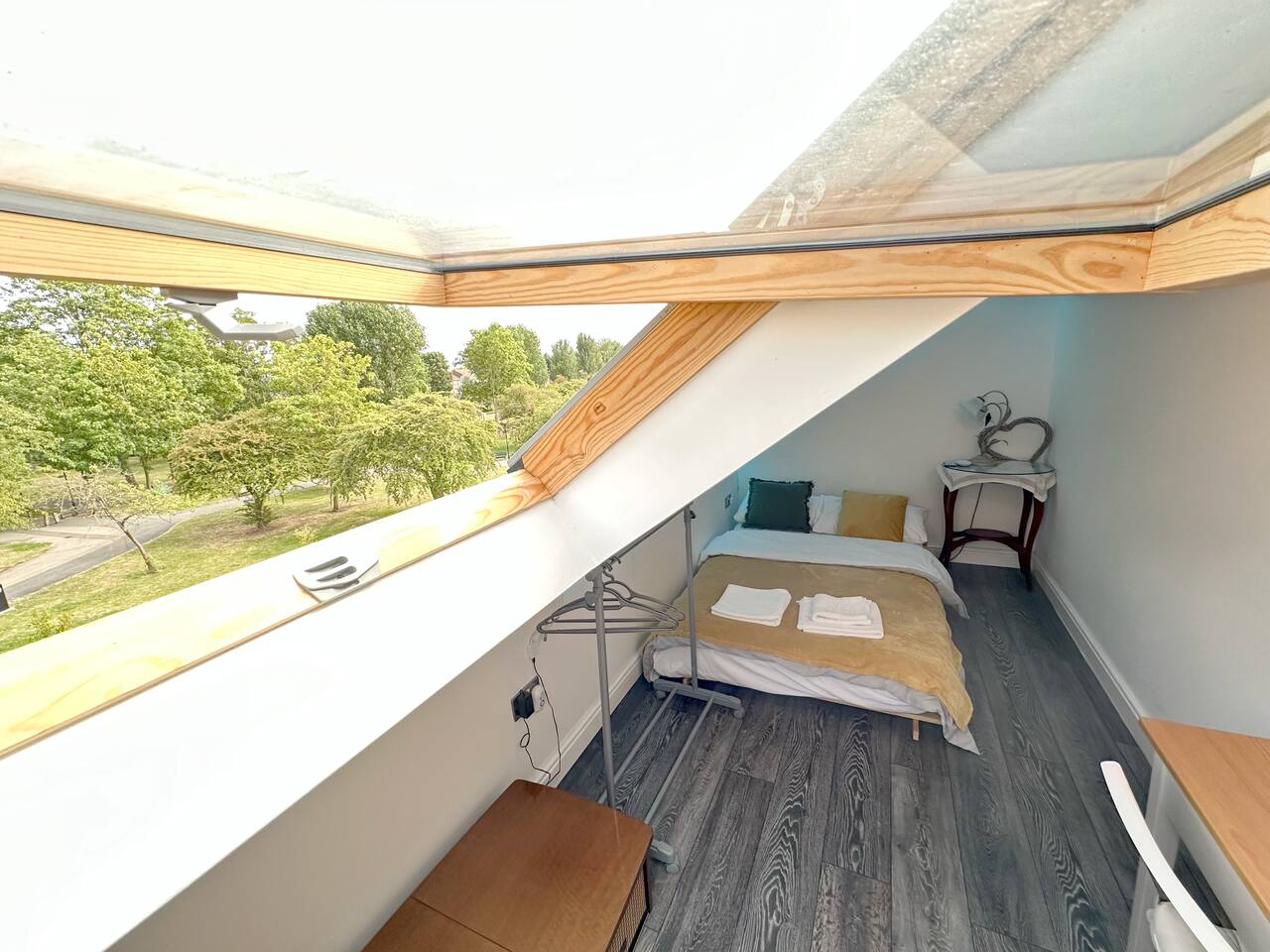 Discover the charm and convenience of London from this inviting 2-bedroom residence, your quintessential home away from home. The ground floor is designed with an open-plan kitchen, living, and dining area, creating an ideal space for both relaxation and social interaction. This fluid layout encourages a seamless living experience. Ascending to the upper floor, you will encounter two tranquil double bedrooms. It is important to note that the second bedroom is a loft conversion accessible via steep stairs, which may pose a challenge for some guests. One of the standout features of this property is the front garden, which offers a serene view of a lush green park. This area serves as an idyllic setting for enjoying your morning coffee or indulging in a good book during the afternoon. However, do be aware that the vibrant neighborhood and the adjacent park might attract local youngsters, resulting in occasional noise. Situated in South East London, the house is conveniently located just a 10-minute bus ride from Abbey Wood station. From there, you can effortlessly access the Elizabeth Line and other train services, facilitating swift travel to central London in a mere 15 minutes. Additionally, there is a dedicated parking for our guests for 1 car and also free on street parking. To ensure a comfortable stay, we provide all essential amenities, including linen, towels, and toiletries. The living area is furnished with a cozy 3-seater leather sofa, a dining table, and a Smart TV. The kitchen is fully equipped with modern appliances, such as an oven, hob, fridge, freezer, and all necessary cooking utensils to prepare your meals. The master bedroom boasts a double bed, a clothes rack with hangers, towels, and fresh linen. This room is further enhanced by underfloor heating, providing warmth during colder months. The loft bedroom is equipped with a futon double bed, a clothes rack with hangers, an LED light strip above the bed, towels, and fresh linen. An electric heater fan is available in this room to ensure a comfortable temperature. Please be mindful that the loft bedroom may not be suitable for individuals of taller stature. The bathroom includes a bathtub, toilet, and a selection of toiletries, such as travel-size shower gel, soap, and shampoo. Should you require additional toiletries during your stay, they can be conveniently purchased at the nearby Thamesmead Shopping Centre or near Abbey Wood station. Parking is straightforward, with a designated spot available for one vehicle, and additional free public parking on the street.