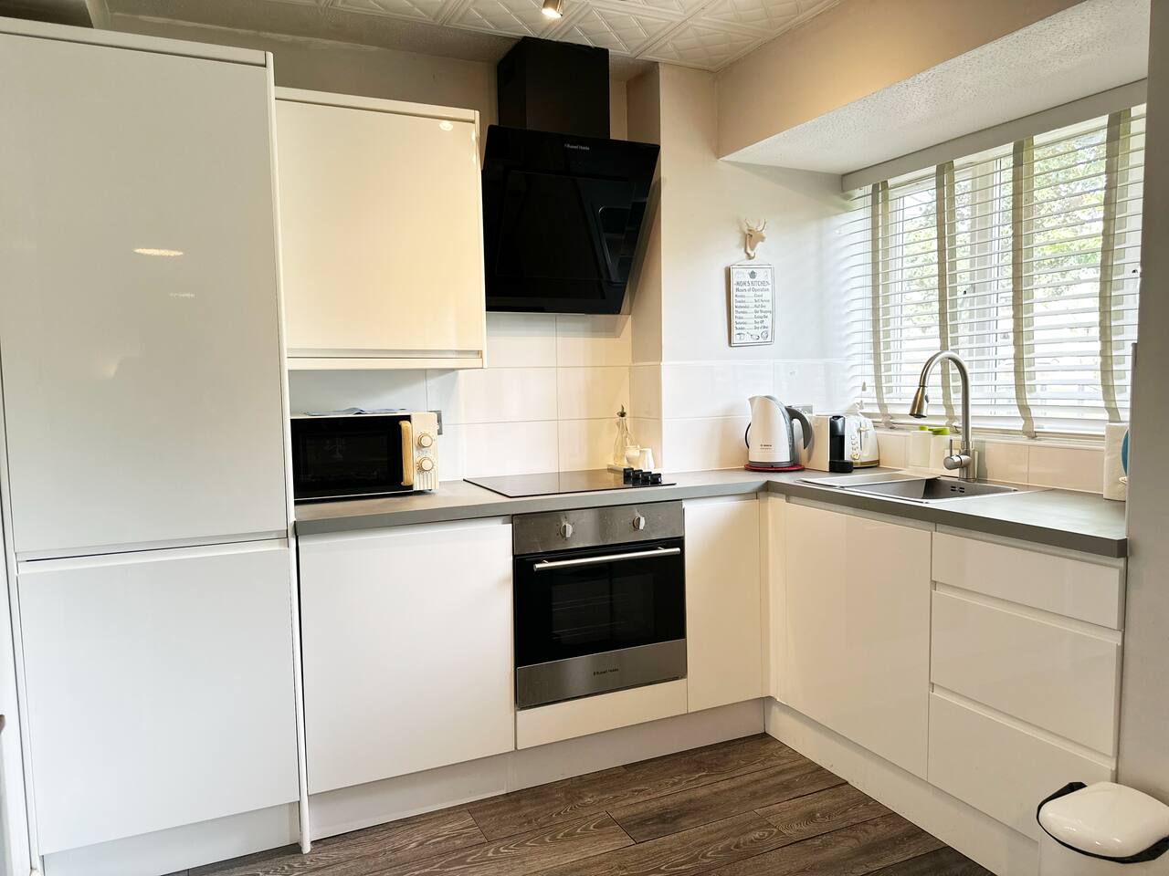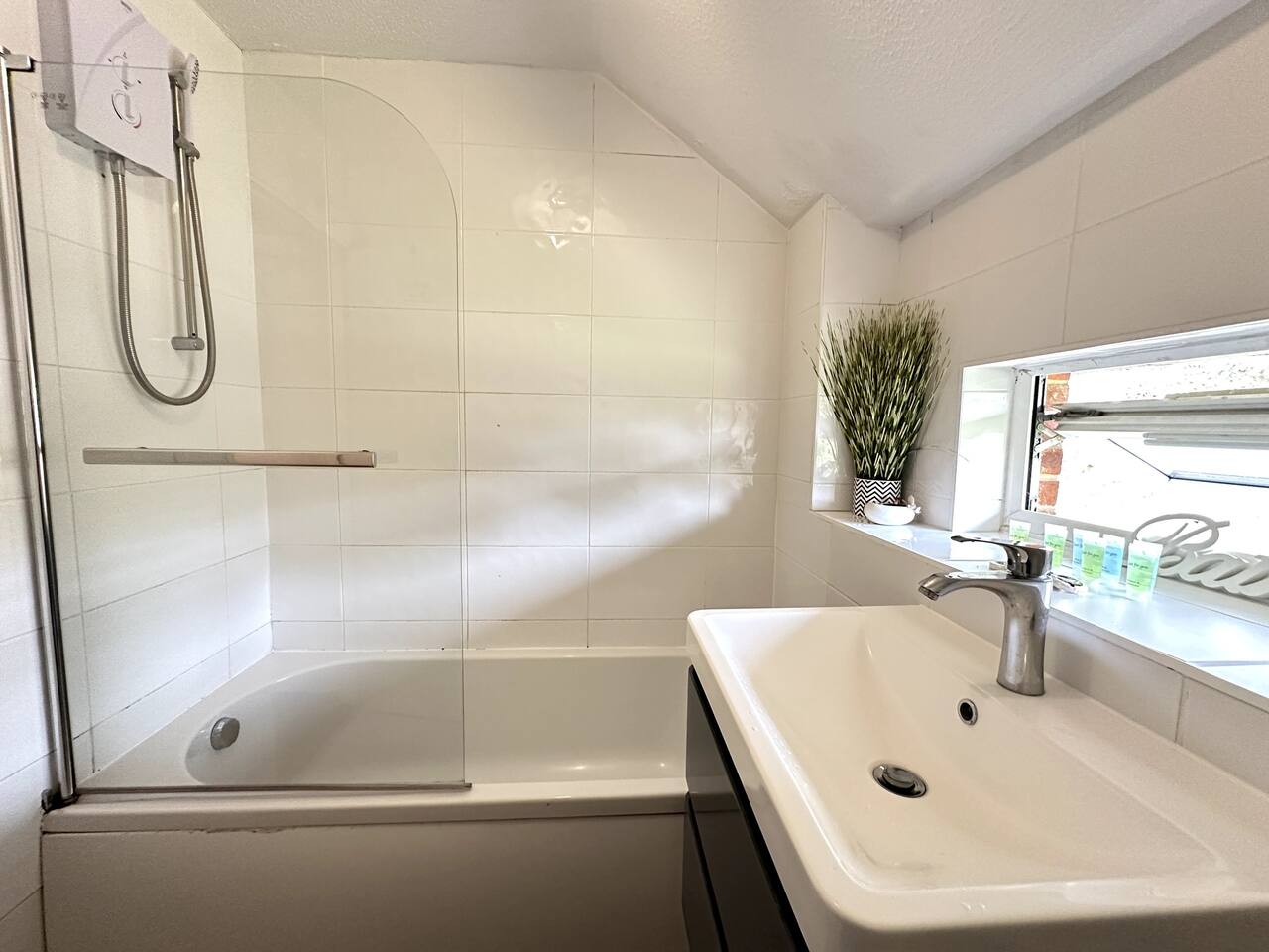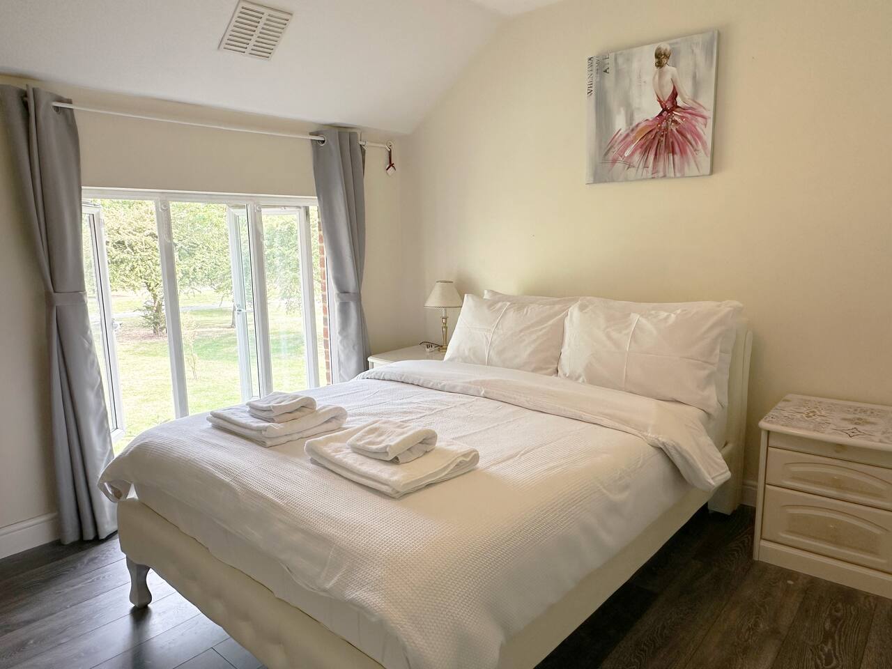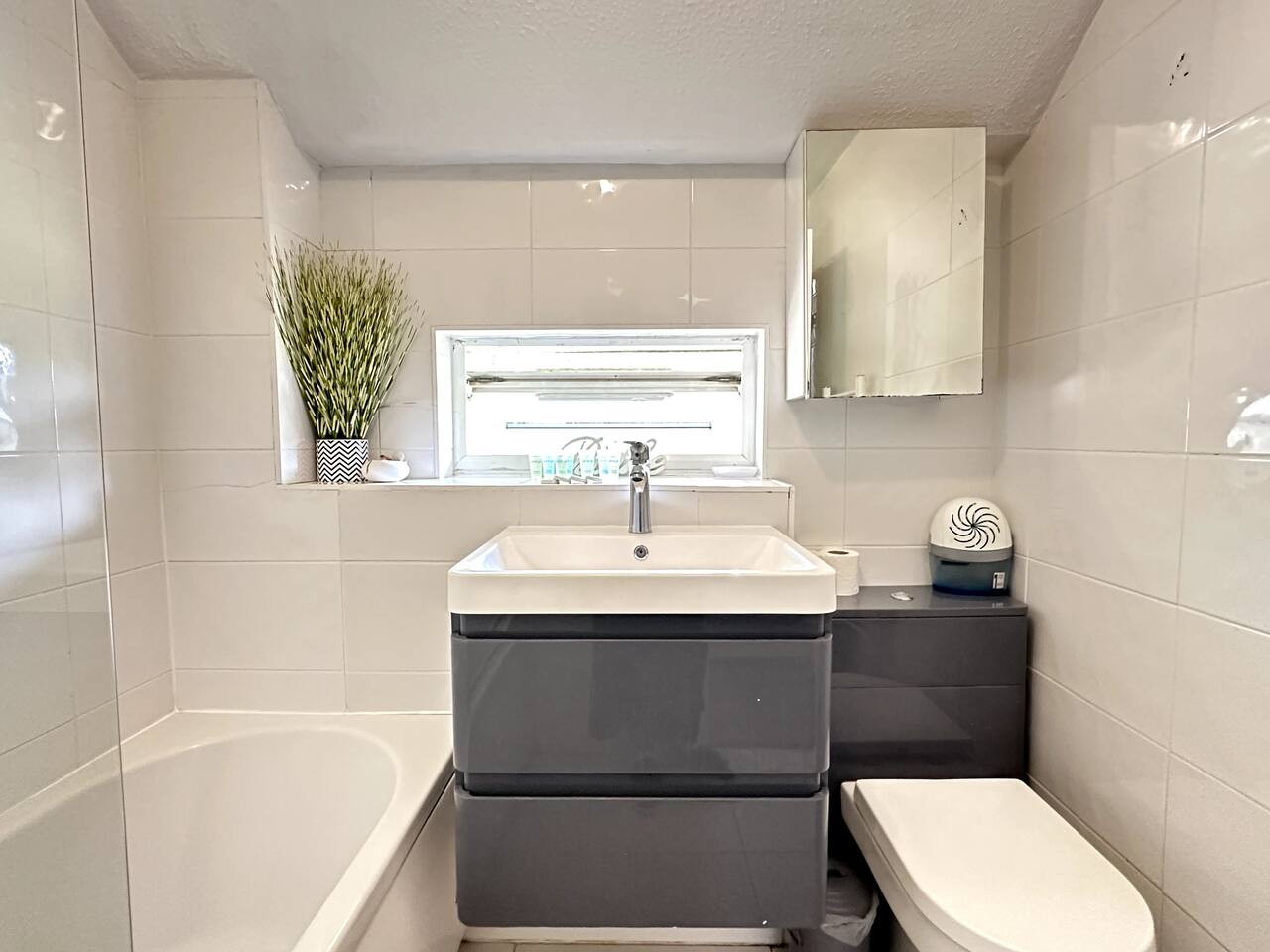 Discover the charm and convenience of London from this inviting 2-bedroom residence, your quintessential home away from home. The ground floor is designed with an open-plan kitchen, living, and dining area, creating an ideal space for both relaxation and social interaction. This fluid layout encourages a seamless living experience. Ascending to the upper floor, you will encounter two tranquil double bedrooms. It is important to note that the second bedroom is a loft conversion accessible via steep stairs, which may pose a challenge for some guests. One of the standout features of this property is the front garden, which offers a serene view of a lush green park. This area serves as an idyllic setting for enjoying your morning coffee or indulging in a good book during the afternoon. However, do be aware that the vibrant neighborhood and the adjacent park might attract local youngsters, resulting in occasional noise. Situated in South East London, the house is conveniently located just a 10-minute bus ride from Abbey Wood station. From there, you can effortlessly access the Elizabeth Line and other train services, facilitating swift travel to central London in a mere 15 minutes. Additionally, there is a dedicated parking for our guests for 1 car and also free on street parking. To ensure a comfortable stay, we provide all essential amenities, including linen, towels, and toiletries. The living area is furnished with a cozy 3-seater leather sofa, a dining table, and a Smart TV. The kitchen is fully equipped with modern appliances, such as an oven, hob, fridge, freezer, and all necessary cooking utensils to prepare your meals. The master bedroom boasts a double bed, a clothes rack with hangers, towels, and fresh linen. This room is further enhanced by underfloor heating, providing warmth during colder months. The loft bedroom is equipped with a futon double bed, a clothes rack with hangers, an LED light strip above the bed, towels, and fresh linen. An electric heater fan is available in this room to ensure a comfortable temperature. Please be mindful that the loft bedroom may not be suitable for individuals of taller stature. The bathroom includes a bathtub, toilet, and a selection of toiletries, such as travel-size shower gel, soap, and shampoo. Should you require additional toiletries during your stay, they can be conveniently purchased at the nearby Thamesmead Shopping Centre or near Abbey Wood station. Parking is straightforward, with a designated spot available for one vehicle, and additional free public parking on the street.