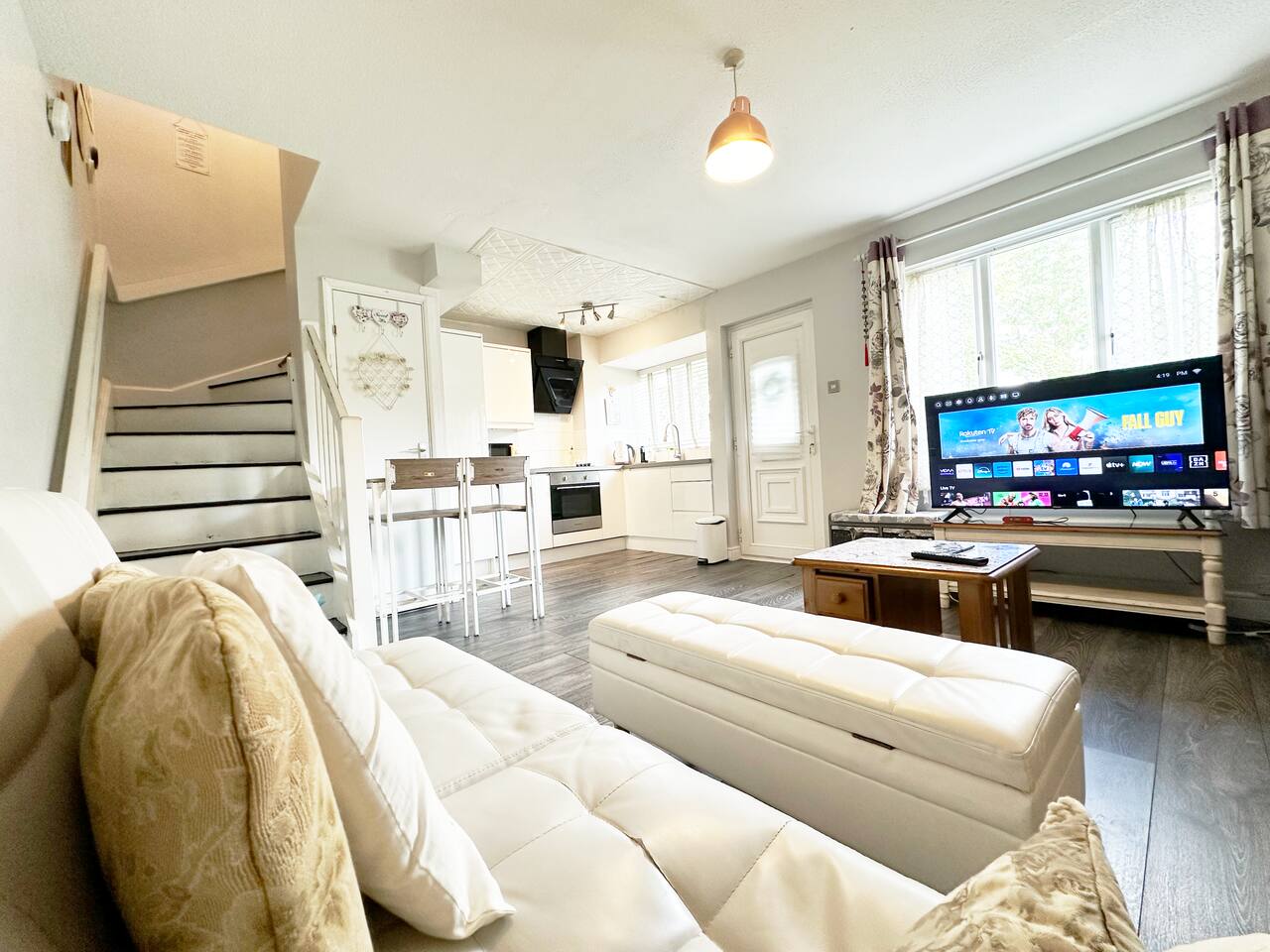 Immerse yourself in the charm of London with a stay in this delightful 2-bedroom house, the perfect home away from home. The ground floor boasts an open-plan kitchen, living, and dining area, creating an ideal space for relaxation and social gatherings. Upstairs, there are two peaceful double bedrooms. Note that the second bedroom is a loft conversion with steep stairs, which might be difficult for some guests. Abbey Wood station for Elizabeth Line is 10-15 minutes bus ride away for C. London