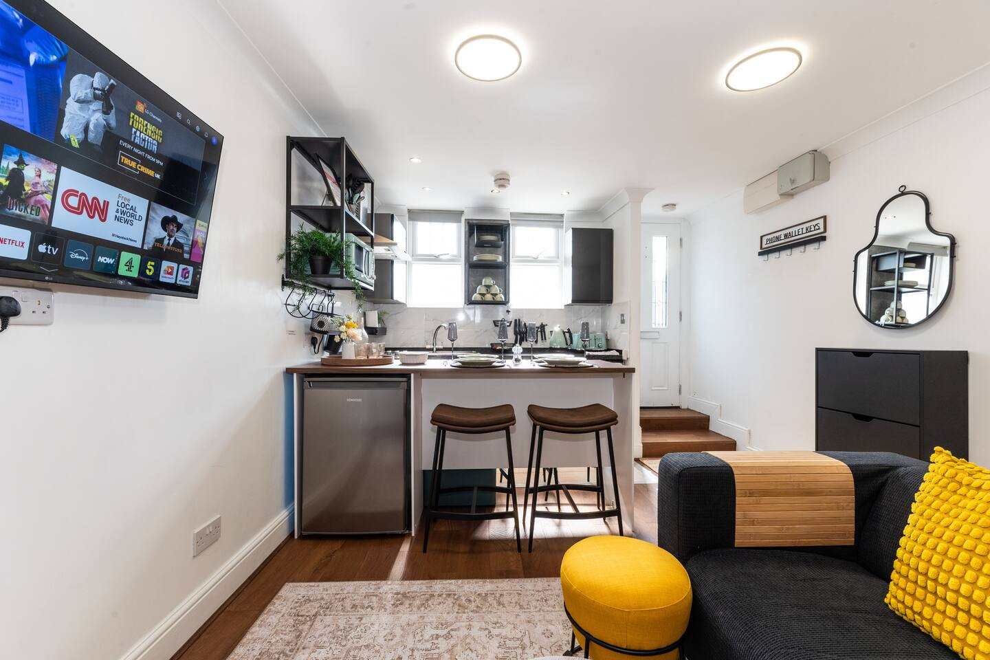 The Space Step into this bright, cute, open-plan retreat, designed for comfort and style. Perfect for couples, small families, or professionals, this home features: 2 bedrooms (1 king bed, 1 double bed) 1.5 bathrooms Open-plan living & kitchen β fully equipped with appliances, cookware, and a dining area Fast WiFi & smart TV β ideal for work or downtime Thoughtful touches β luxury linens, blackout blinds, and ample storage π The Location Nestled in the heart of Woolwich, youβre: 11-minute walk to Woolwich Arsenal Station (DLR/Elizabeth Line) β 20 mins to Canary Wharf, 30 mins to Central London Short stroll to Thames riverside walks, Royal Arsenalβs cafes, and the O2 Arena Groceries & dining nearby (Tesco, pubs, and independent eateries) π Why Guests Love It β Prime location β explore London with ease β Stylish & clutter-free β a true home-away-from-home β Self-check-in β hassle-free arrival anytime Ideal for: Solo adventurers, couples, business travellers, or small families. No parties, please β we love our neighbours!