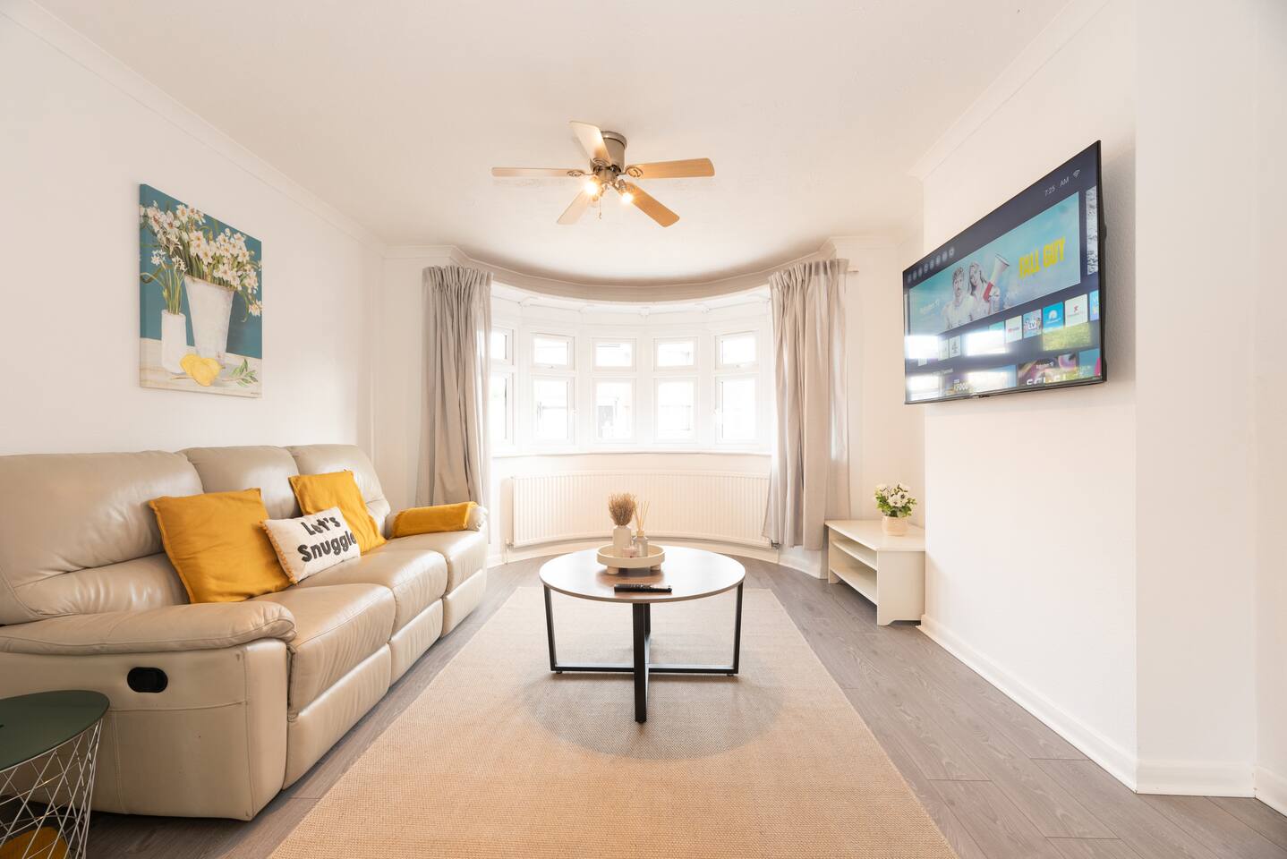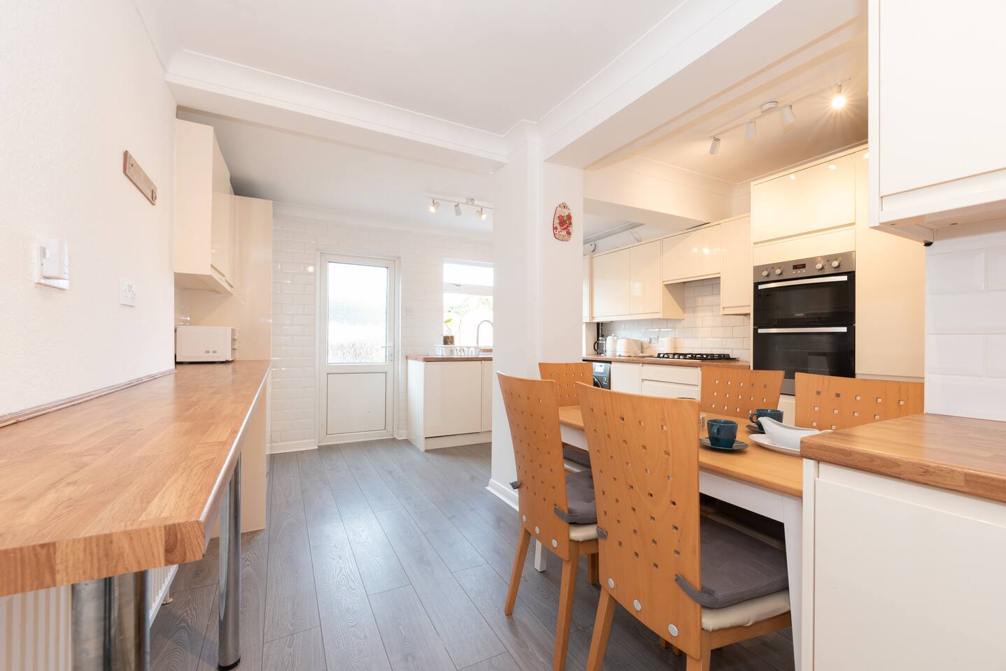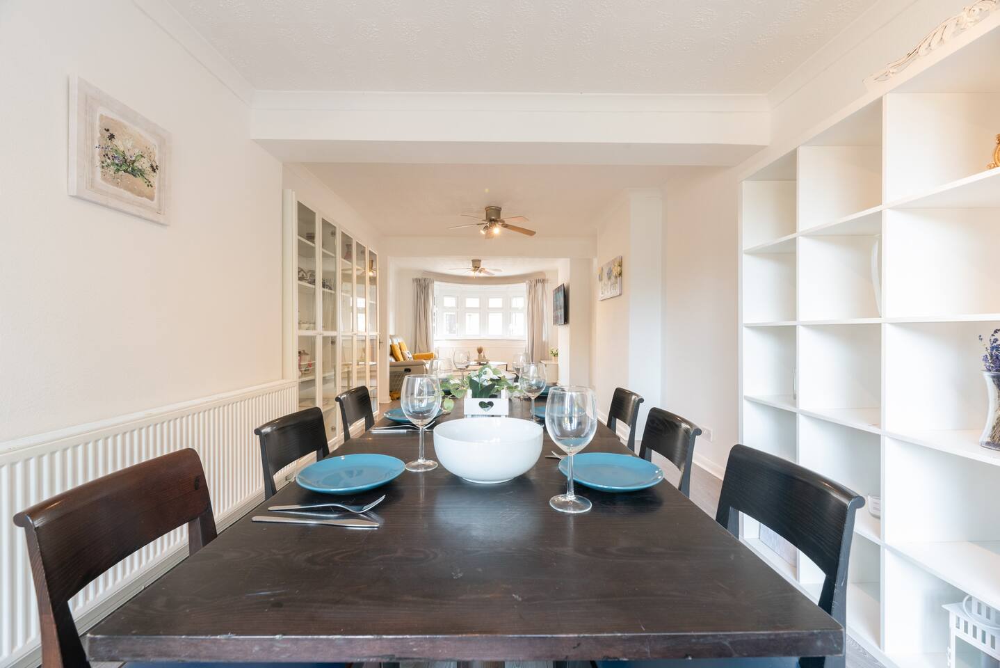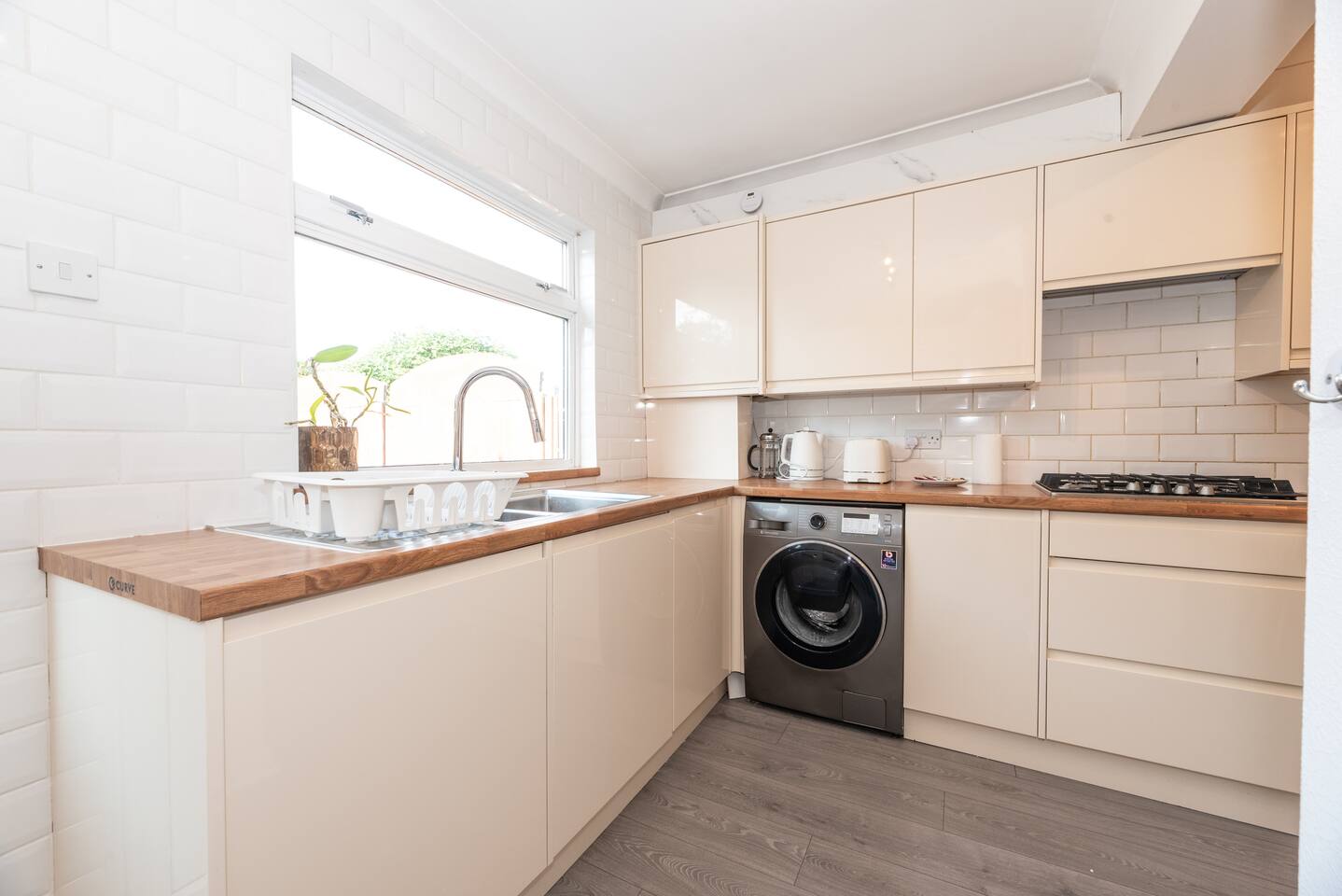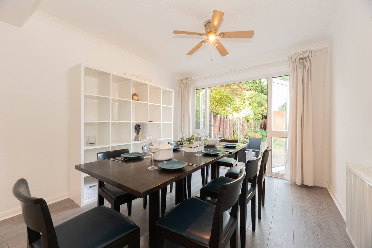 You will find all the amenities you need in this house and can enjoy some fresh air and the outdoors in the large back garden. Upstairs, you’ll find four generously sized bedrooms. Master bedroom - Super King size bed and built-in wardrobes Bedroom 2 - A double bed, open rail shelf and a cot bed Bedroom 3 - A double bed and built-in wardrobe Bedroom 4 - A single bed Main Bathroom - a large bathtub and a toilet Downstairs Toilet Garden - outdoor table and sofa set. Specious open plan living and dining area - A large 3 seater sofa and a Smart TV (with Freeview channels, Netflix, Amazon Prime and a lot more) 8 seater dining table and Super fast internet with up to 500 Mbps internet speeds. Specious kitchen and dining area - dining table for 6 and all the necessary kitchen amenities, gas stove, oven, a toaster, a kettle and a microwave. NOTE: There will be some complimentary tea and coffee, as well as shampoo, shower gel and soap. Other items included are a washing-up pack, toilet roll and kitchen roll which will last a couple of days. If you wish to purchase more for your stay there are a number of supermarkets and shops nearby.