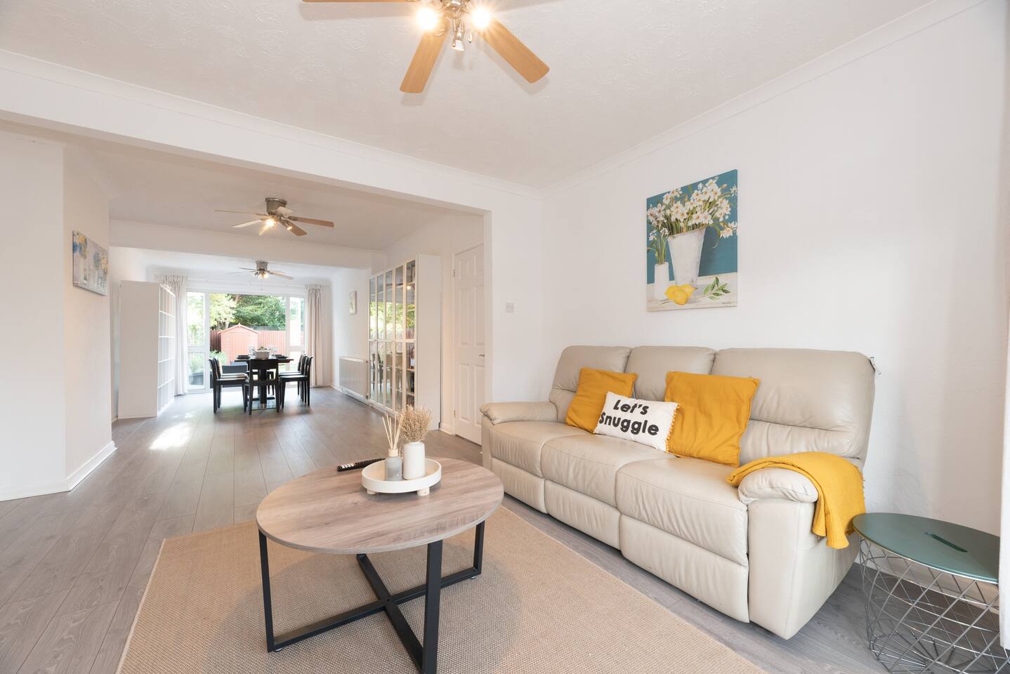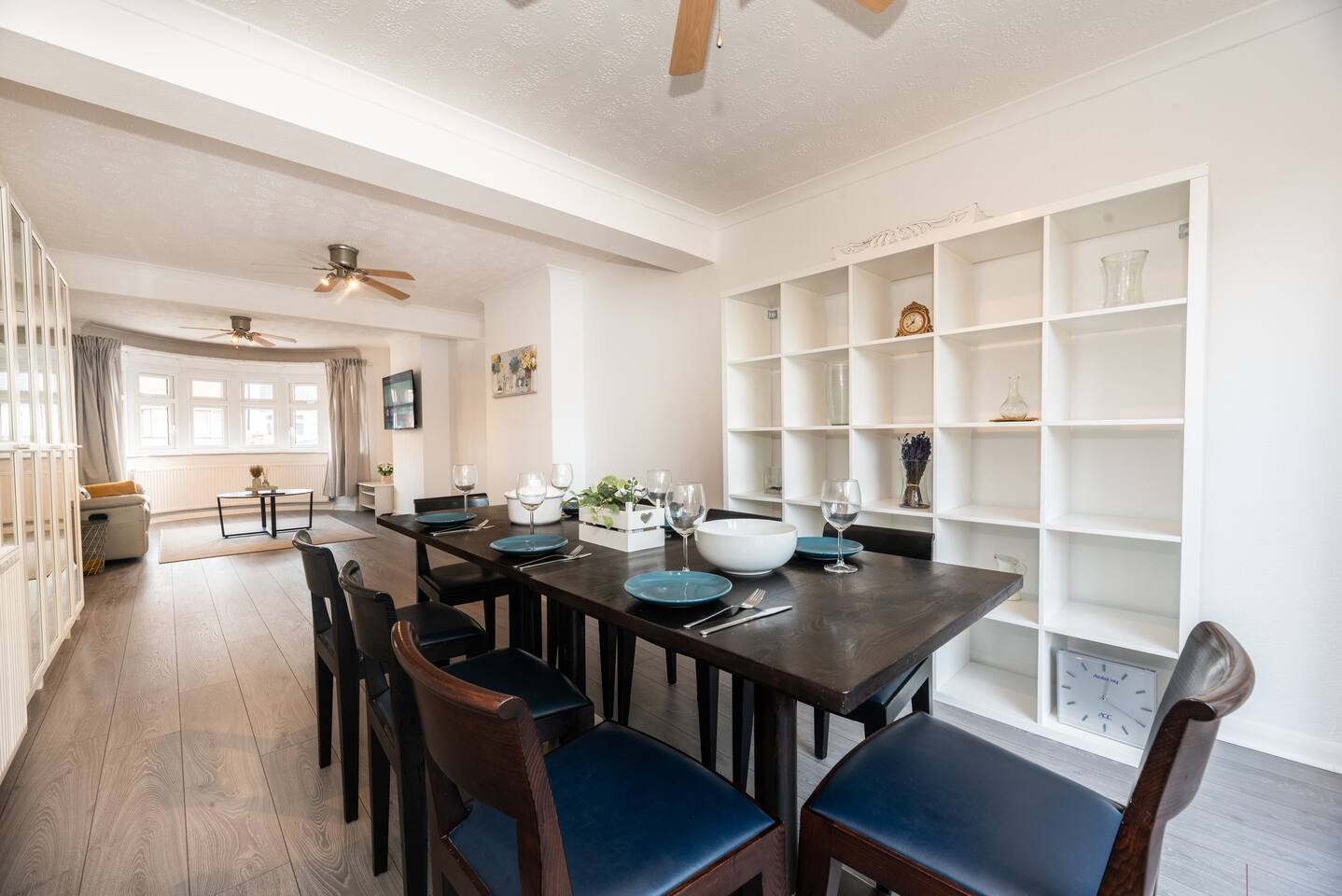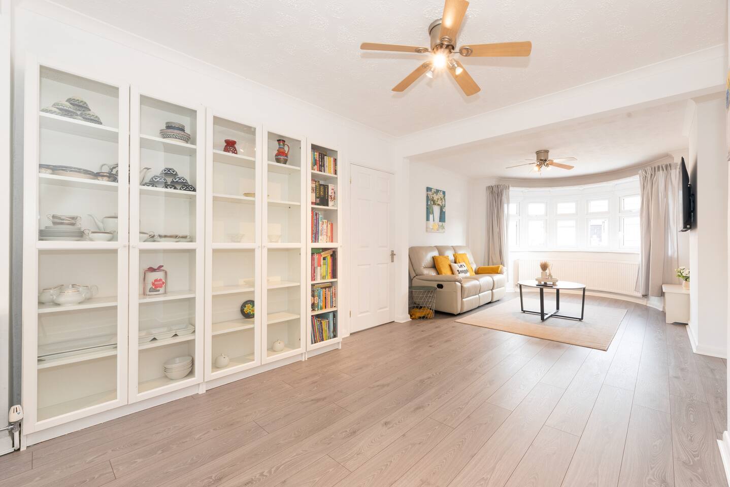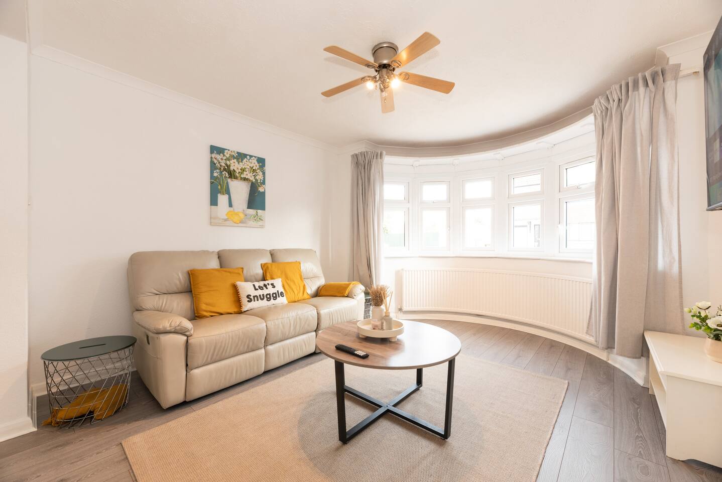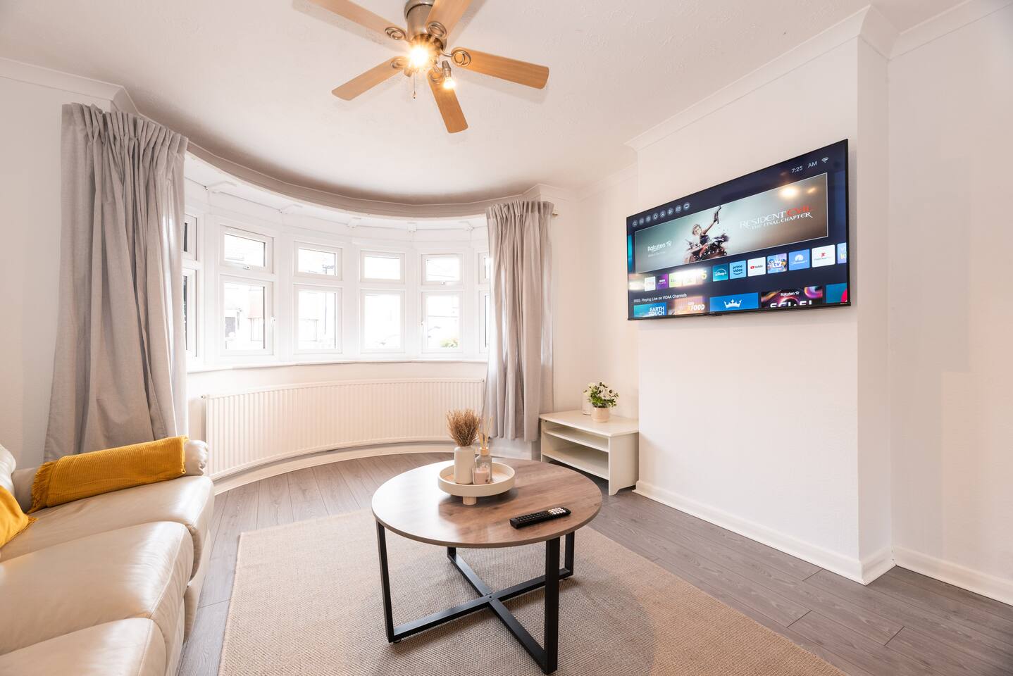 You will find all the amenities you need in this house and can enjoy some fresh air and the outdoors in the large back garden. Upstairs, you’ll find four generously sized bedrooms. Master bedroom - Super King size bed and built-in wardrobes Bedroom 2 - A double bed, open rail shelf and a cot bed Bedroom 3 - A double bed and built-in wardrobe Bedroom 4 - A single bed Main Bathroom - a large bathtub and a toilet Downstairs Toilet Garden - outdoor table and sofa set. Specious open plan living and dining area - A large 3 seater sofa and a Smart TV (with Freeview channels, Netflix, Amazon Prime and a lot more) 8 seater dining table and Super fast internet with up to 500 Mbps internet speeds. Specious kitchen and dining area - dining table for 6 and all the necessary kitchen amenities, gas stove, oven, a toaster, a kettle and a microwave. NOTE: There will be some complimentary tea and coffee, as well as shampoo, shower gel and soap. Other items included are a washing-up pack, toilet roll and kitchen roll which will last a couple of days. If you wish to purchase more for your stay there are a number of supermarkets and shops nearby.